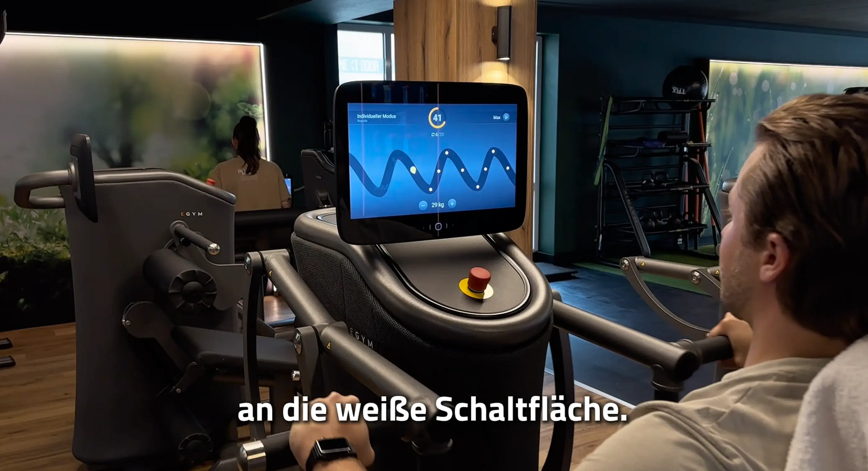 Beim ersten Start führt dich EGYM automatisch durch das Smart Onboarding. Dabei werden alle Geräte auf deinen aktuellen Leistungsstand eingestellt, sodass du sicher und ohne Voreinstellungen trainieren kannst.
